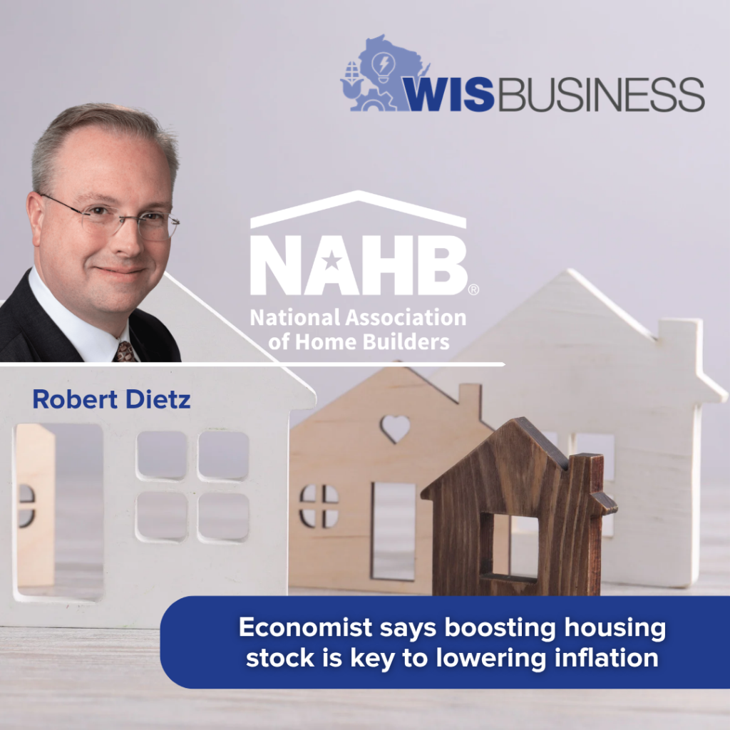 Lowering construction costs to boost U.S. housing inventories will be key to reducing inflation, a top national economist told attendees of the Wisconsin Economic Forecast Luncheon. Robert Dietz is the chief economist and senior vice president for economics and housing policy for the National Association of Home Builders. He was